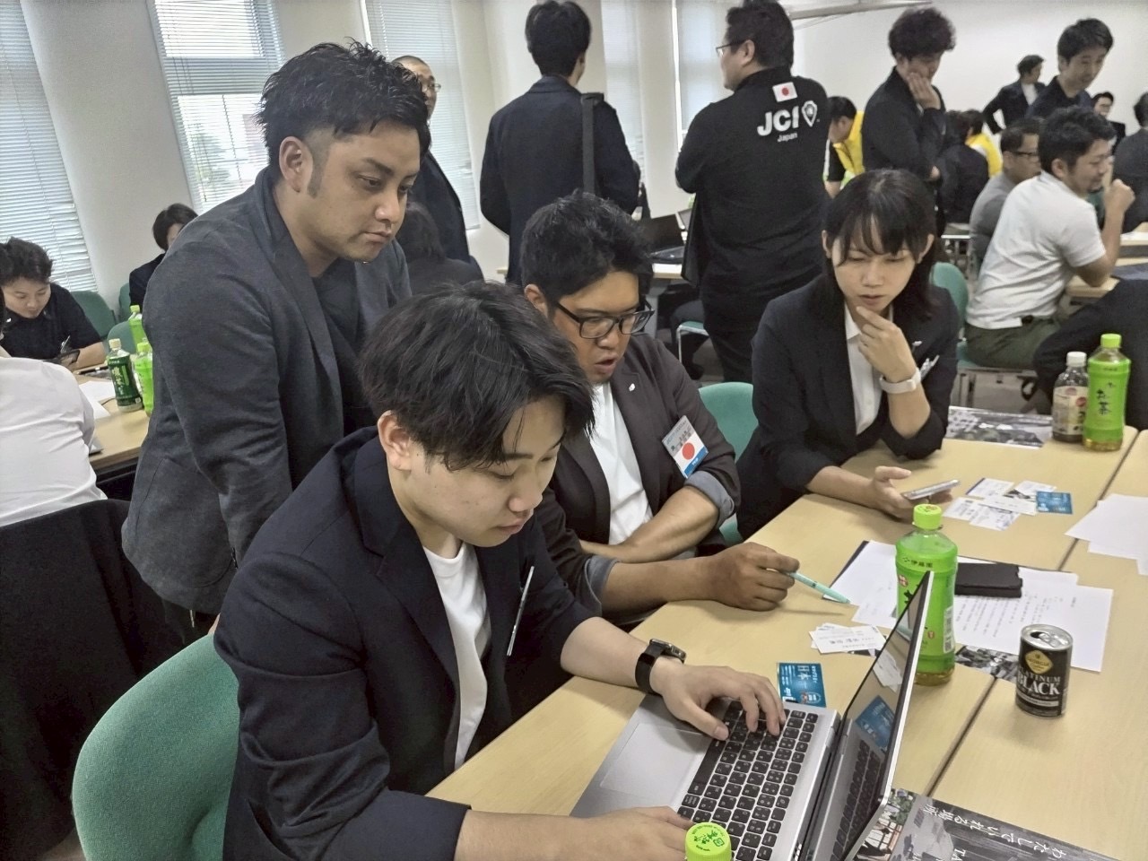 今回は、アワード受賞歴のある長門JCの久永信也君より、地域を巻き込んだ効果的な事業構築について講演を伺い、その後グループに分かれての事業構築・発表を行いました。